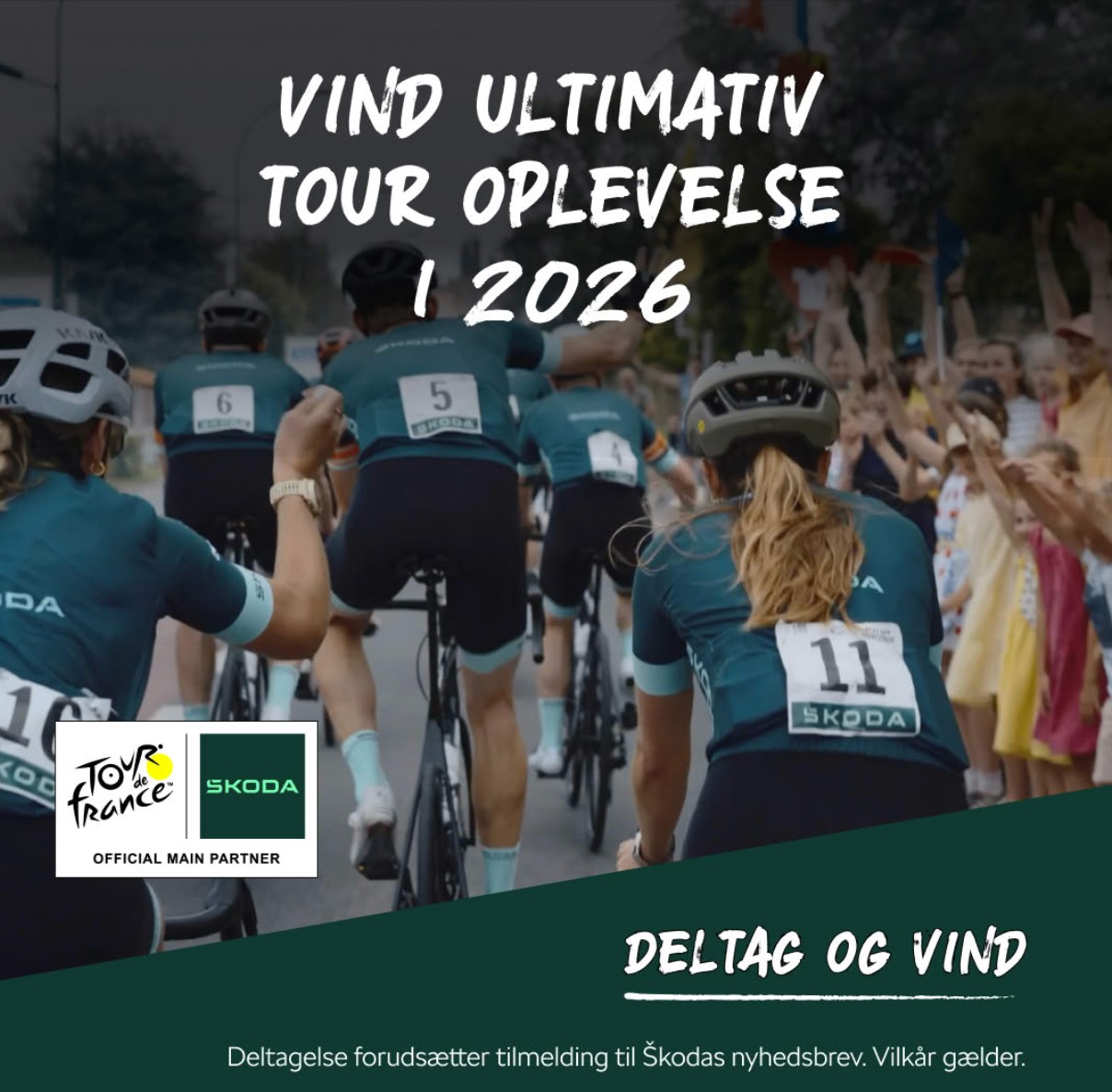 Hvordan lyder det at skifte sofaen ud med oplevelser helt tæt på Tour’en i 2026? Škoda sender dig og en ledsager til Tour de France 2026.